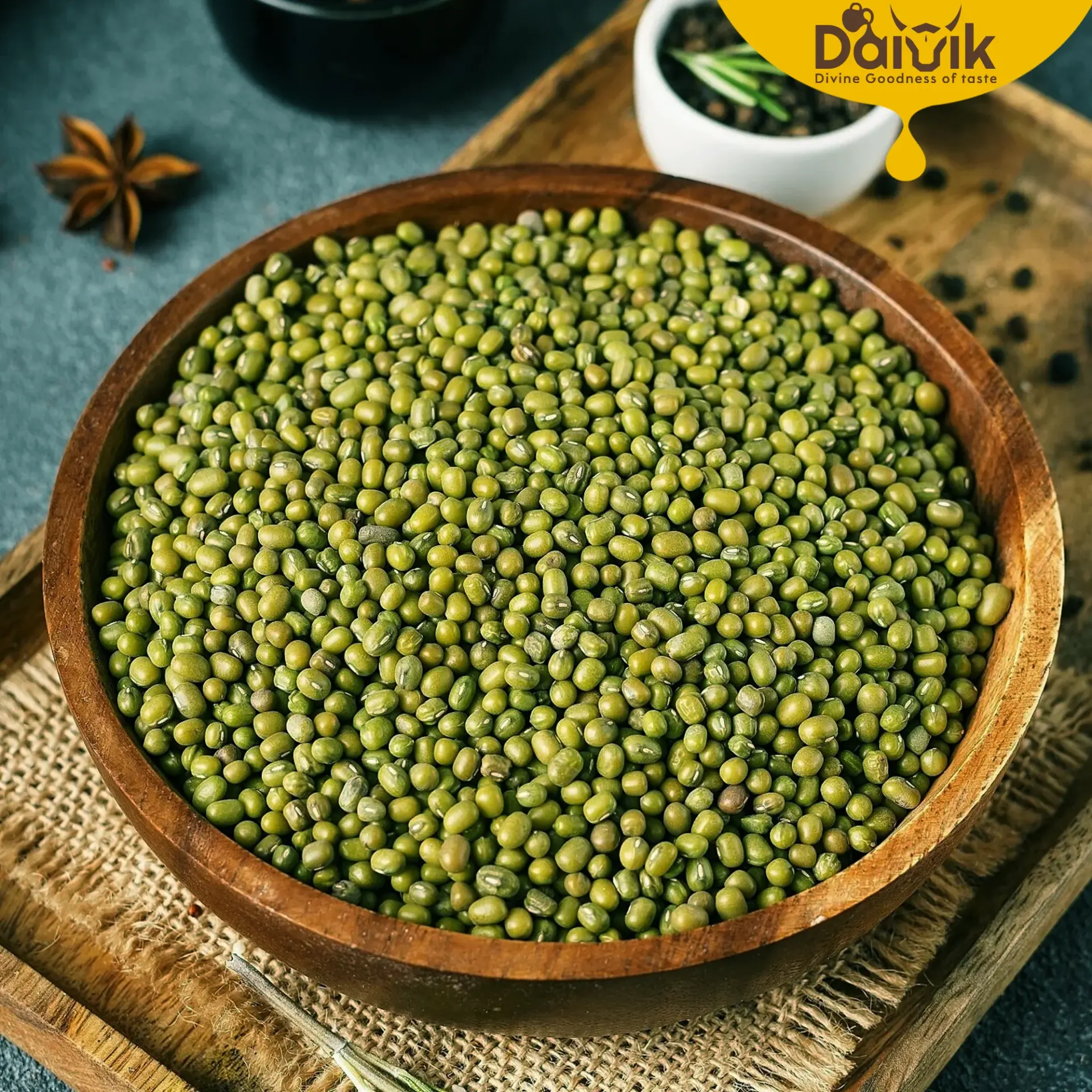 Whole green gram with skin, rich in fiber and protein.